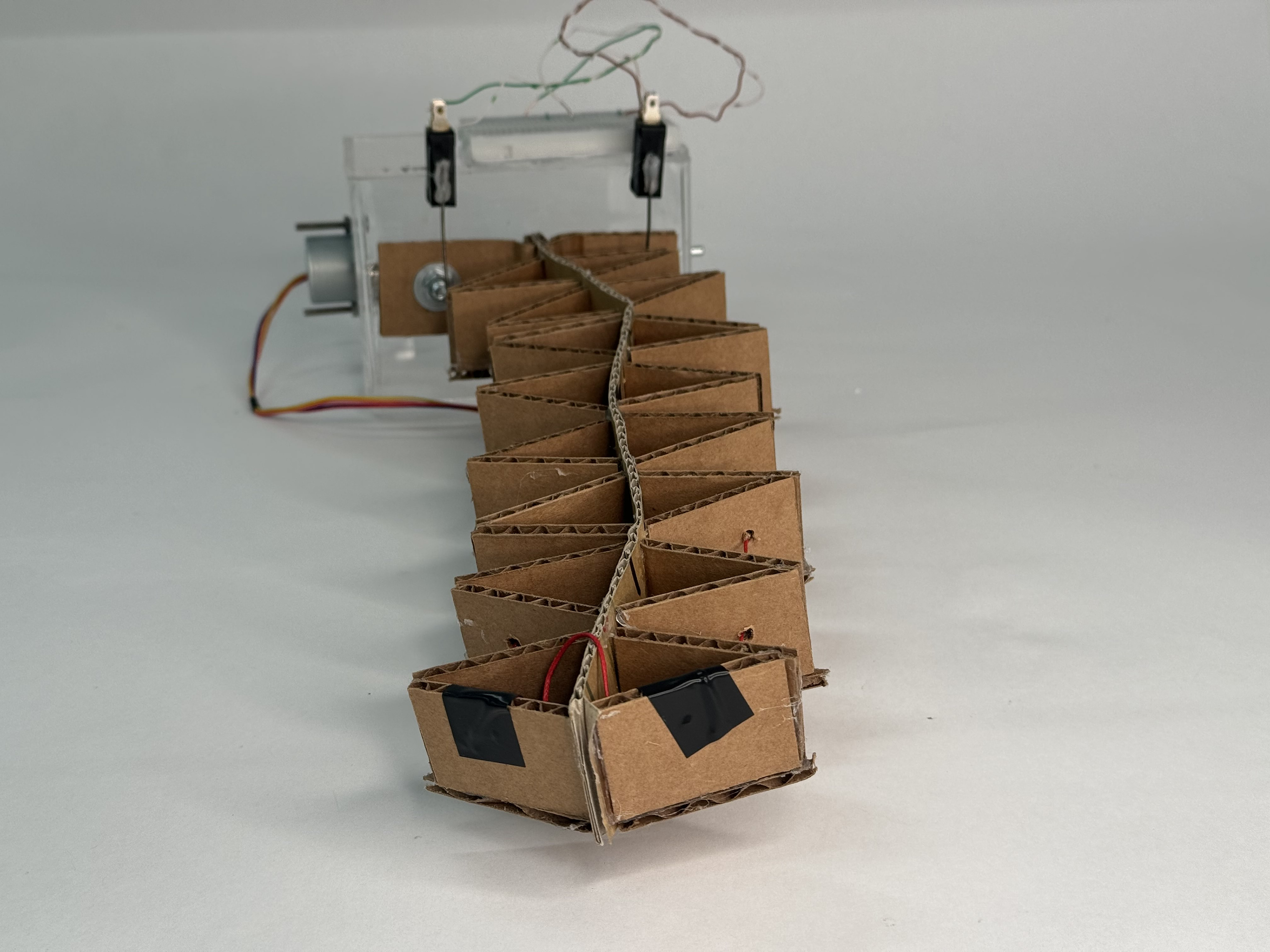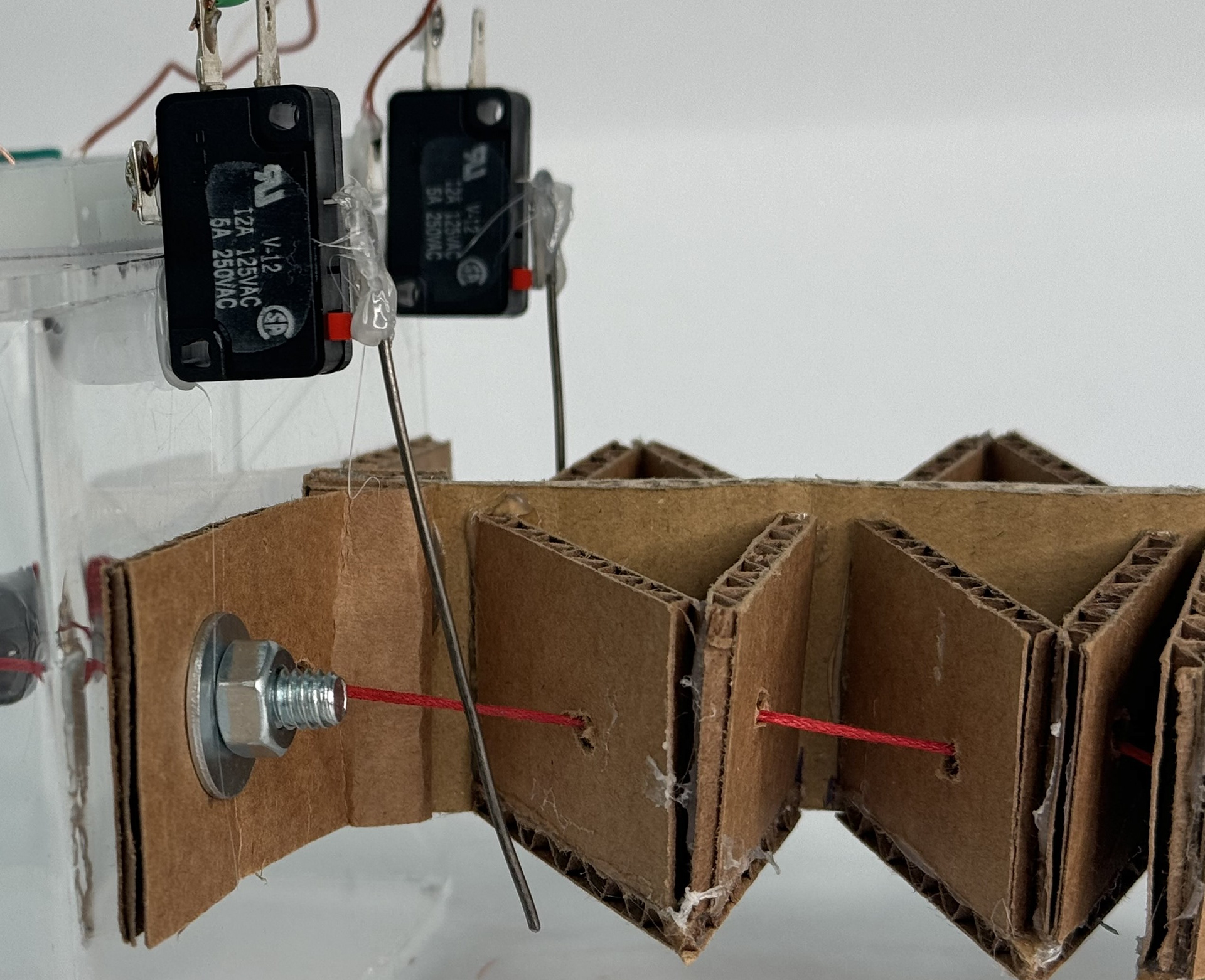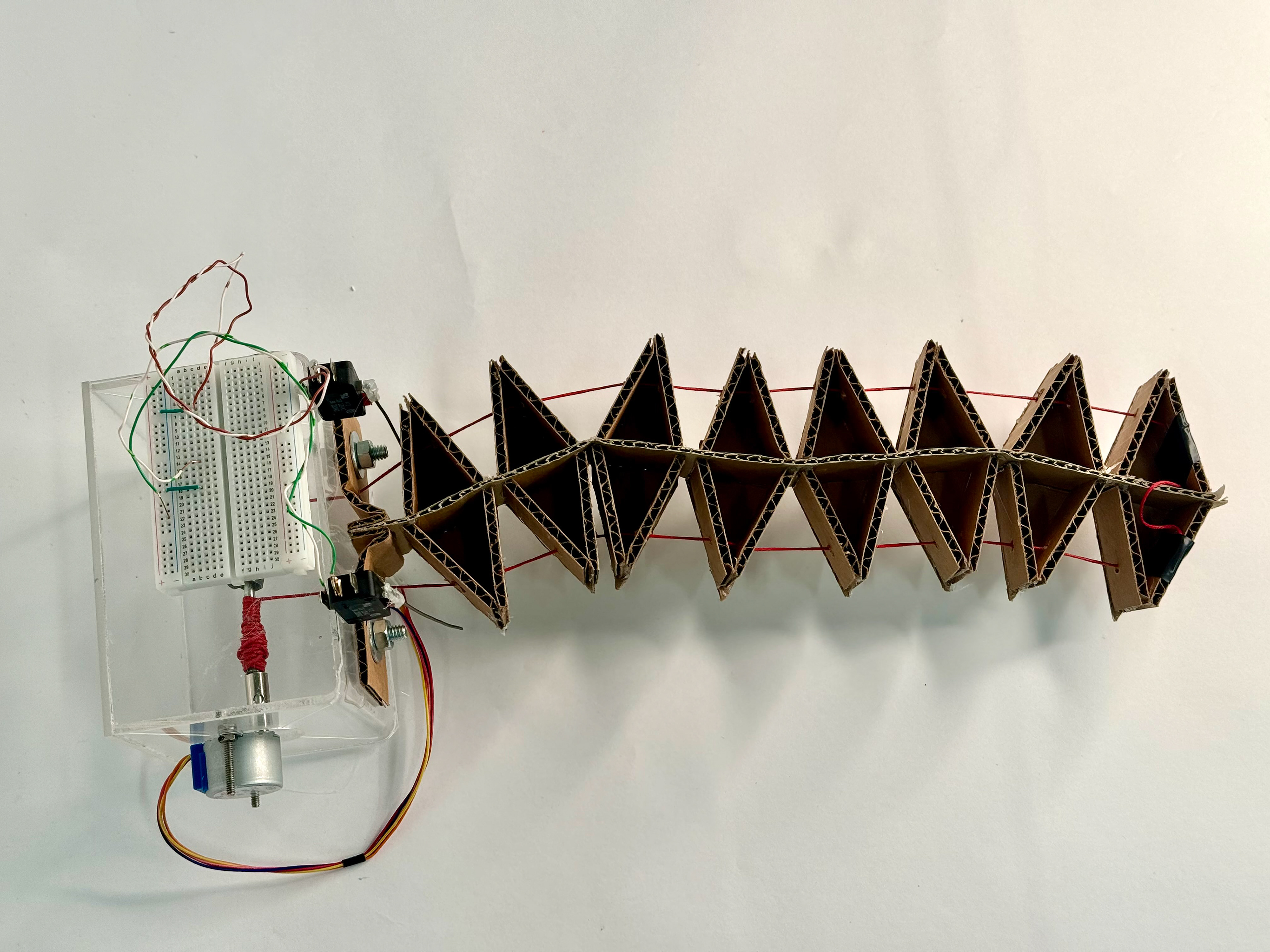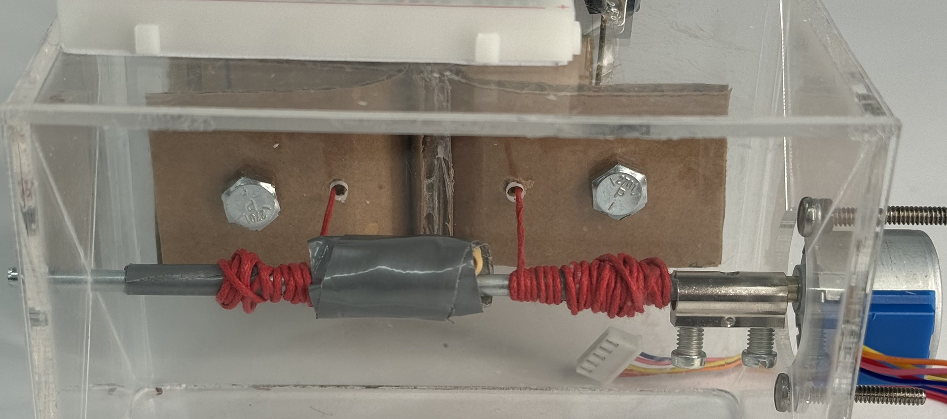 Used Arduino, Stepper motor, Cardboard, and Rope